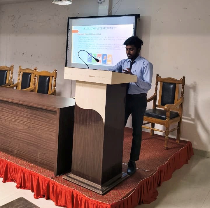 Future pharmacists in action! B.Pharm 4th Year students presenting their seminar in the presence of Dr. (Prof.) C.S. Singh and esteemed faculty at R.K. College of Pharmacy.